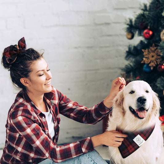 E-Clover Fall Dog Bandana & Matching Scrunchie-Christmas Dog Bandana Triangle Plaid Pet Scarf Bib for Medium Large Dogs Girl Boy Owner Gift