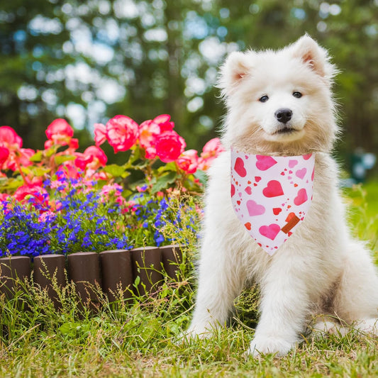 PTDECOR Valentine Dog Bandana, White Purple Love Heart Design Reversible Dog Scarf, Triangle Valentine Bandanas for Small Pets (Small)