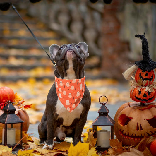 PTDECOR Halloween Dog Bandana, Ghost Pumpkin Design Reversible Holiday Dog Scarf, Triangle Halloween Bandanas for Medium Large Dogs Pets (Large)