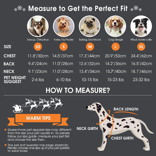 Queenmore Dog Christmas Sweater,Turtleneck Knitted Pullover Xmas Dog Clothes Sweatshirt,Pet Christmas Outfit, Warm Doggy Sweaters for Small Dogs Boy Girl S