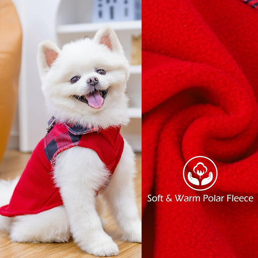 EXPAWLORER Fleece Dog Sweater - Classic Plaid Dog Jacket, Winter Coat Vest with 2 D-Rings for Leash, Pet Cold Weather Clothes, Sweatershirt for Boy or Girl