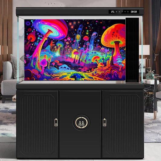 Fantasy Mushrooms Aquarium Background Abstract Mysterious Mushroom Landscape Terrarium Background Amazing Rainbow Mushrooms Theme Fish Tank Backdrop Poster Wallpaper Decorations Vinyl 24x12in