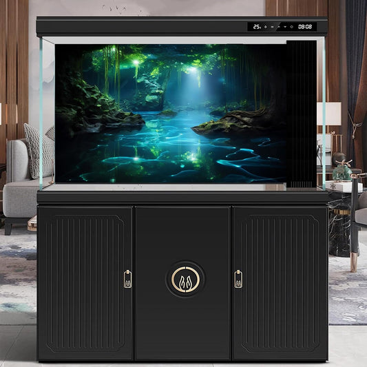 Cave Aquarium Background Underwater Cave with Light Beam Tranquil Stream Terrarium Background Mysterious Elegant Fantasy Tropical Plants Fish Tank Backdrop Wallpaper Poster Decorations Vinyl 30x18in