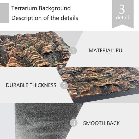PINVNBY Reptile Terrarium Cork Background,17.72x11.02 Inches 3D Bearded Dragon Tank Backgrounds Wall Reptile Stereo Backdrop Amphibian Habitat Climbing Board Decoration for Lizard Gecko Reptile Turtle