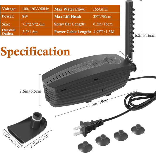 AQQA Aquarium Filter for 30-80 Gallon Fish Tank Powerful Submersible Pumps & Filters with Bio Filtration for Crystal Clear Tank (5W,135GPH)