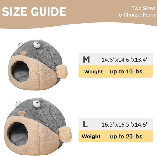 Cat Beds for Indoor Cats - Cat Bed Cave with Removable Washable Cushioned Pillow,2 in 1 Super Soft Animal-Shape Cat Tent for Kitten and Small cat, Lively Pufferfish cat beds & Furniture, Grey(M)