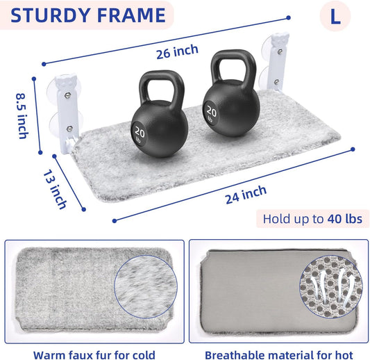 pettycare Cat Window Perch, Cordless Cat Window Hammock Bed with 4 Strong Suction Cups, Foldable Kitten Balcony Seat for Inside Hold Up to 40lbs, Solid Metal Frame and Soft Reversible 2 Fabrics Cover