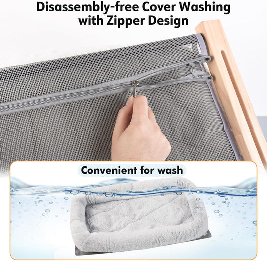 AMOSIJOY Cat Sill Window Perch Sturdy Hammock Window Seat with Cushion Cover, Wood & Metal Frame for Large Cats, Easy to Adjust Cat Bed for Windowsill, Bedside, Drawer and Cabinet (XL)