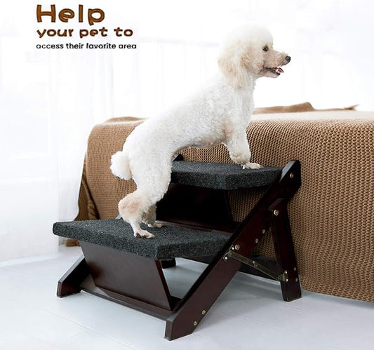 MEWANG Wooden Pet Stairs/Pet Steps - 2-in-1 Foldable Stairs & Ramp for Beds and Cars - Portable Dog/Cat Ladder Up to 110 Pounds