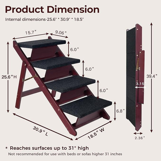 BRIKY 2-in-1 Dog Stairs/Ramp with 4 Steps, Foldable Dog Stairs for High Beds Cars Couch, Durable Wooden Pet Stairs for Small Medium Large Dogs, No Assembly Required