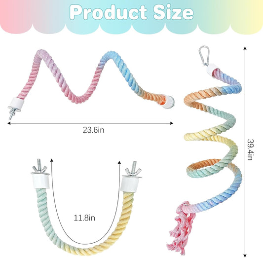 BNOSDM 3 Pcs Bird Rope Perches Gradient Colorful Bendable Climbing Rope Ladders Swings Toy Parakeet Cage Accessories for Parrots, Budgies, Cockatiels, Conures, Lovebirds
