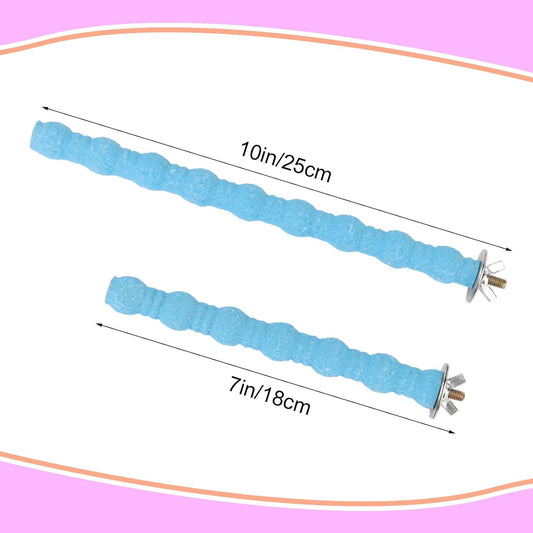 Hypeety 2PCS Bird Wood Perch Stand Paw Grinding Stick Toy Pet Bird Cage Stand Platform for Bird Parrot Budgies Parakeet Cockatiels Cage Accessories (7in/10in) (Blue)
