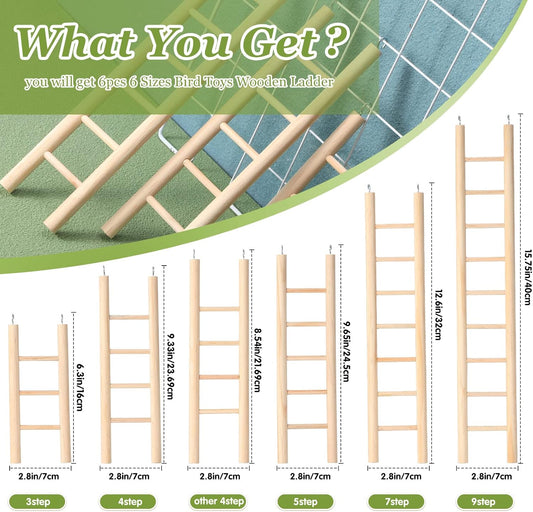 Kigeli 6 Pcs Wood Step Ladder for Bird, Hanging Bird Ladder Parrot Step Cage Hanging Climbing Toys for Parakeets, Parrots, Cockatoo and Lovebirds