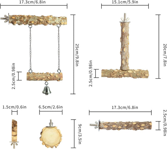 CozyCabin Natural Wood 4Pcs Bird Perches Stand, Hanging Cage Toys Accessories for Small Parrot Budgies Conure Parakeets Cockatiels Lovebirds
