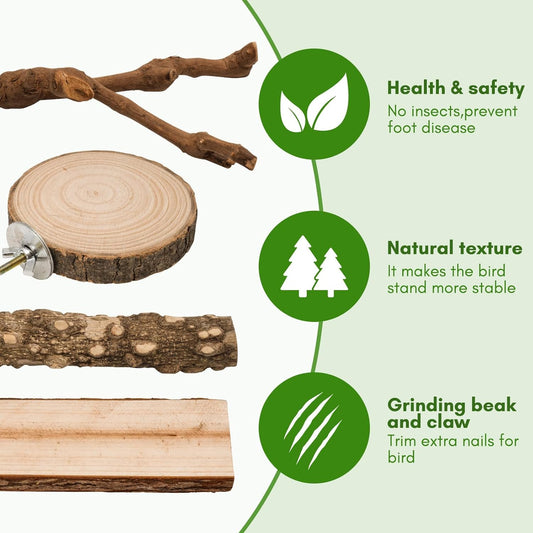 CozyCabin Bird Perch Stand Natural Wood Cage Perch Bird Cage Accessorie Toys Standing Rack for Cockatiels, Parakeets, Macaw, Small Birds Exercise Training