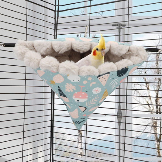 Wontee Bird Nest House Winter Warm Hanging Hammock Bird Bed Snuggle Hut for Parakeets Budgies Caique Conures Cockatiels (Large, Blue)
