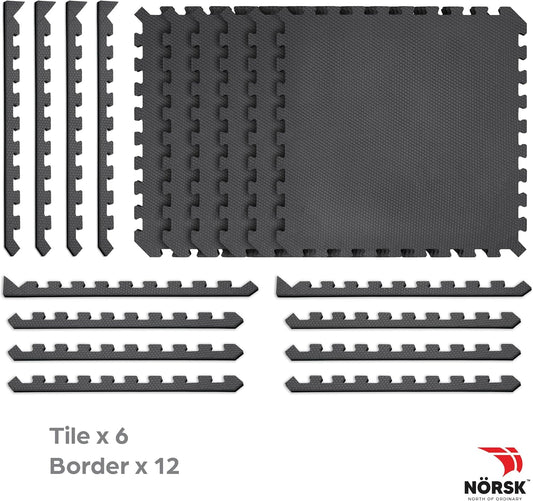 Norsk Dual-Sided Reversible 1/2" Foam Exercise Mats for Home Gym - Interlocking EVA Foam Tiles