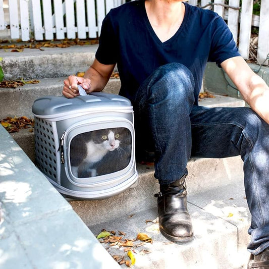 Pet Magasin Hard Cover Collapsible Cat Carrier - Pet Travel Kennel with Top-Load & Foldable Feature for Cats, Small Dogs Puppies & Rabbits