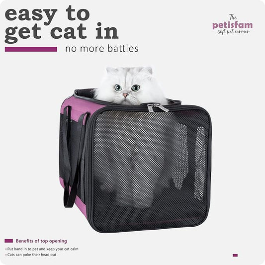 petisfam Soft Pet Carrier for Large and Medium Cats, 2 Kitties, Small Dogs. Easy to Get Cat in, Great for Cats That Don't Like Carriers (Viva Magenta)