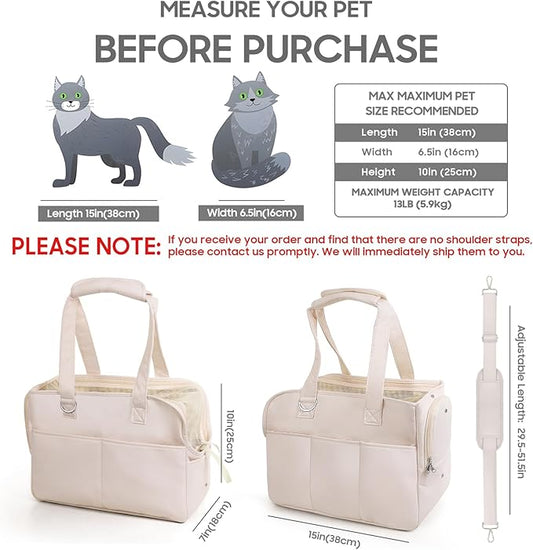 Cat Carrier Bag, Foldable Pet Bag Airline Approved, Pet Travel Carrier for Medium Cats Small Cats Dogs, Sturdy Transport Carriers Long Trips(Brown)