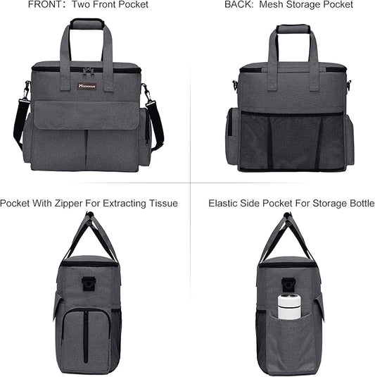 PetAmi Dog Travel Bag, Travel Pet Bag Organizer, Dog Food Travel Bag with Food Container and Bowls, Dog Travel Supplies Gift Accessories for Weekend Camping, Dog Cat Diaper Bag (Charcoal, Medium)