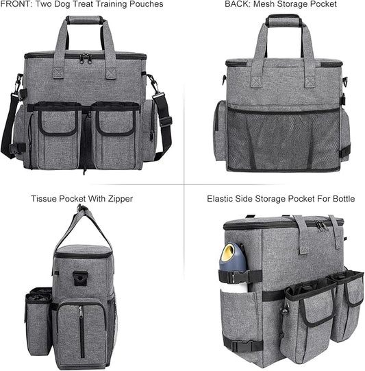 Dog Travel Bag for Camping - Weekend Pet Accessories With 2 Collapsible Bowls, 2 Food Containers, 1 Waterproof Feeding Mat - M, Grey