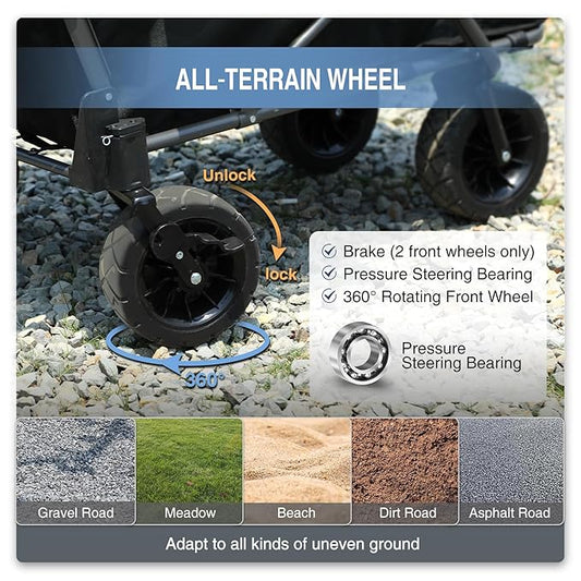 Extra Large Dog Stroller for Medium & Large Pets - Foldable Design, Adjustable Handle, Up to 130 lbs(Black)