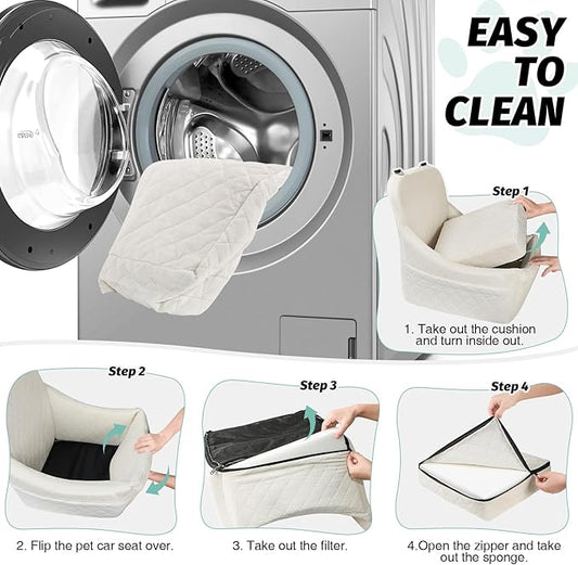 Dog Car Seat for Medium Dogs,Easy to Install with Adjustable Straps,Anti-Slip Bottom,Fully Detachable and Washable,Soft Fabric Fill in Memory Foam,Two Side Pockets(Beige,Medium)
