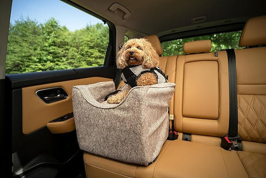 Snoozer Dog Car Seat: Lookout I Dog Booster Car Seat for Dogs Small 5-15 lbs, Pet Car Seat to Alleviate Car Sickness for Dogs, Included Harness Strap, Buckskin Removable Machine Washable Cover