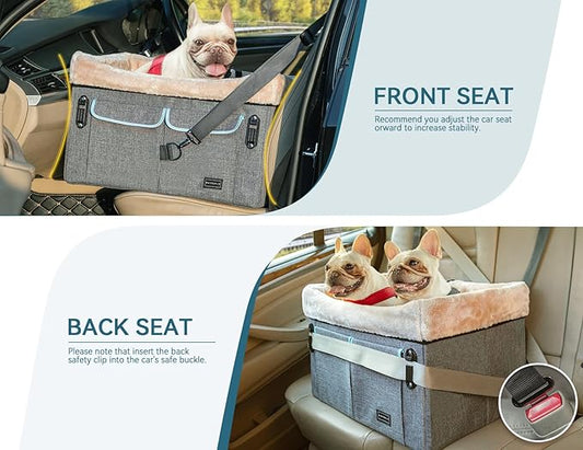 Petsfit Dog Car Seat Medium Sized Dog or 2 Small Dogs with Patent Buckles, Washable Pad, Dog Booster Car Seat for Dogs Up to 45 lbs (Medium, Light Grey)