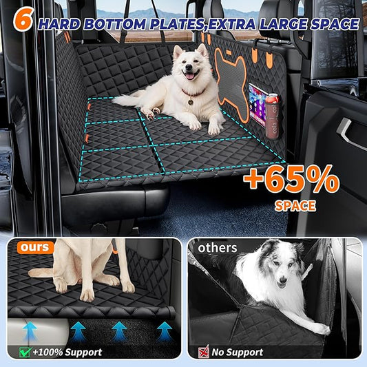 URPOWER XL Dog Back Seat Extender for Crew Cab Truck, Hard Bottom Dog Car Seat Cover Waterproof Dogs Car Hammock Pet Backseat Bed, Pet Truck Accessories for F150 / RAM 1500/ Tundra Crew Cab