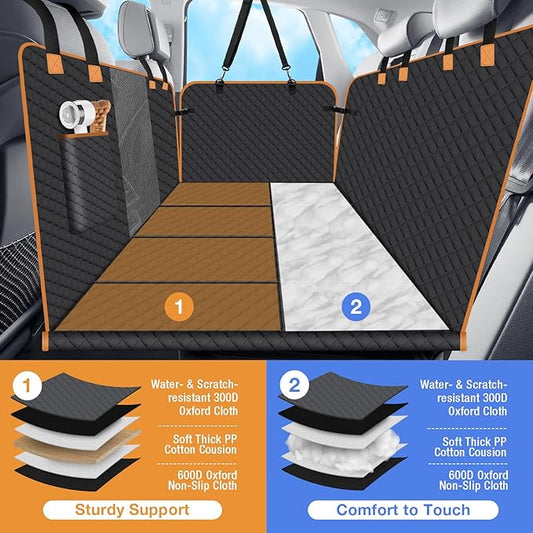 SHARLOVY Back Seat Extender for Dogs, Heavy Duty Dog Car Seat Cover for Back Seat and Aggressive Chewer, Large Hard Bottom Seat Cover for Dogs, Dog Hammock for Car, Travel Pet Bed for Car, SUV, Truck