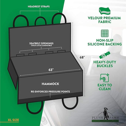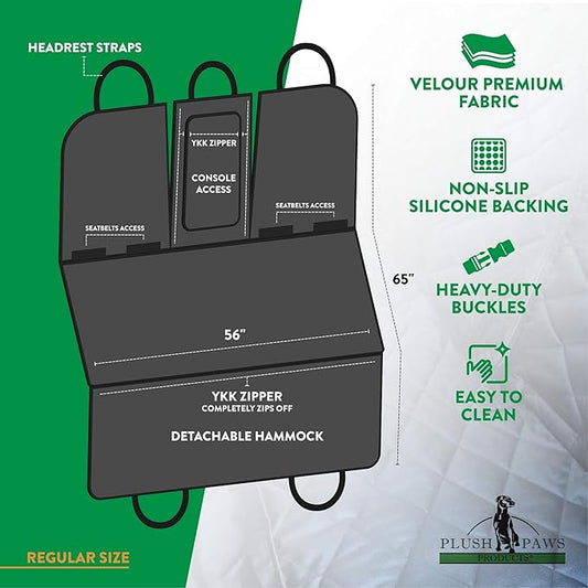 Plush Paws Products Luxury Rear Car Seat Protector w/Hammock | Washable & Waterproof Back Seat Dog Cover for Car, Truck, & SUV | Nonslip, Tear Resistant Pet Seat Cover | Regular Charcoal