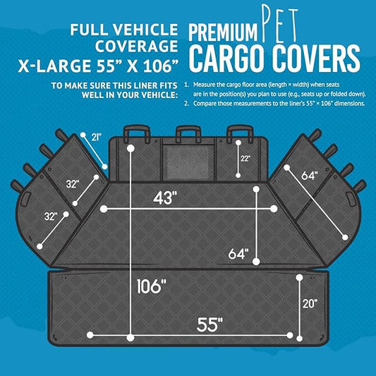 Bulldogology SUV Cargo Liner for Dogs 55"x82" Heavy Duty Pet Trunk Cargo Cover Area - Trunk Cover Car Protector for Dogs Waterproof Nonslip Mat - Dog Cargo Liner SUVs Vans Cars (Large, Black)