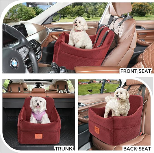 Dog Car Seat for Small/Medium Dogs, Dog Booster Car Seats with Thick Cushion for Dogs Under 35lbs, Detachable Washable Pet Car Seat with Storage Pockets, 2 Safety Belts(Red)