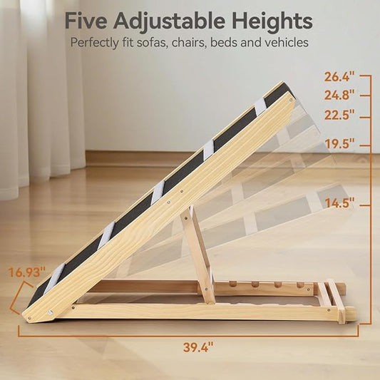 PawGiant Portable Dog Ramp for Bed, 39.4" L x 16.9" W Extra Wide Wooden Pet Ramp for Large Small Dogs, 5 Adjustable Heights from 14.5" to 26.3", Foldable Dog Ramp for Car Couch, Hold Up to 200LBS