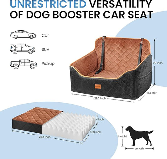A 4 Pet Dog Car Seat for Medium/Large Dog or 2 Small Dogs, Booster Car Seat with Storage Bags and 2 Seat Belts, Pet Seat for Dogs Under 55 lbs