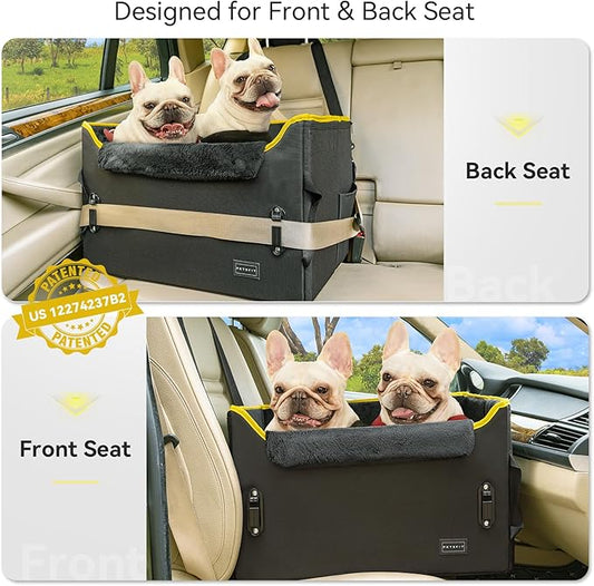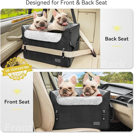 PETSFIT Dog Booster Car Seat, Dog Car Seats for Medium Sized Dogs or 2 Small Pets with 2 Safety Leashes and Patented Buckles, Carseat for Dogs with Storage Pockets for Pets Under 45Lbs (Black)