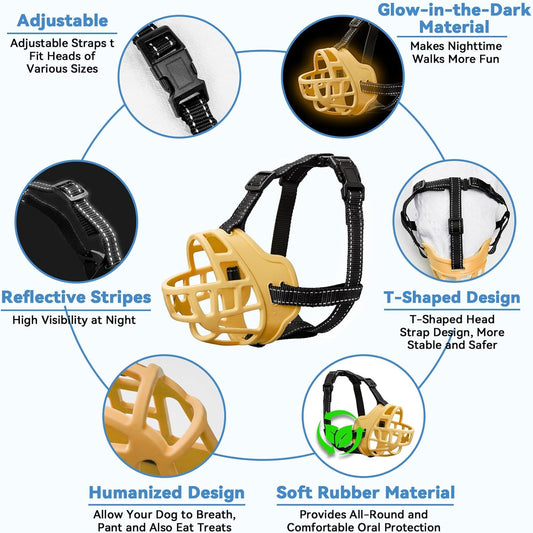 Dog Muzzle for Large Dogs, Breathable Basket Muzzles for Small, Medium and X-Large Aggressive Dog, Allows Panting Drinking, Suitable for Grooming Trimming Training (5, Luminous Green)