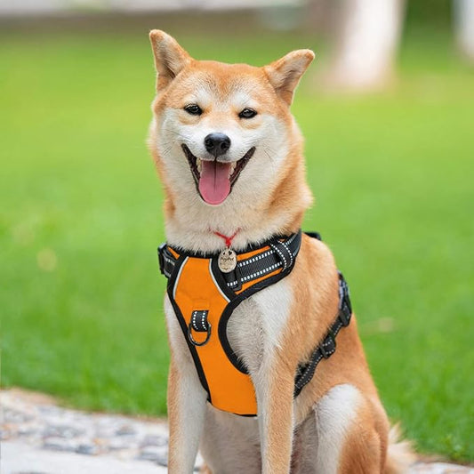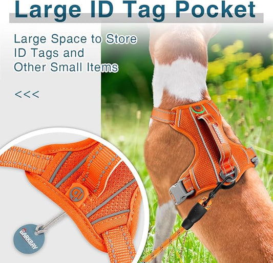 BARKBAY Dog Harness No Pull with ID Tag Pocket - Heavy Duty, Reflective, Easy Control for Large Dogs(Orange,S)