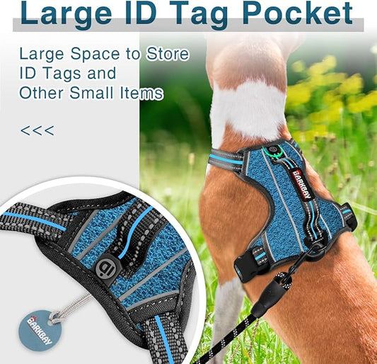 BARKBAY Dog Harness No Pull with ID Tag Pocket - Heavy Duty, Reflective, Easy Control for Large Dogs(Blue,XL)