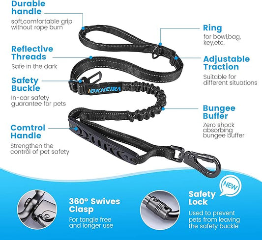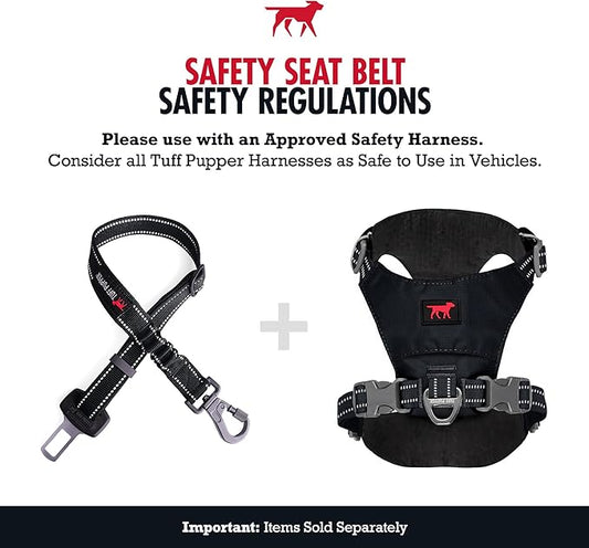 Tuff Pupper Dog Seat Belt | Adjustable Length Dog Seatbelt Restraint | Tangle-Free Locking Carabiner | Shock-Absorbing Bungee | Reflective Stitching for Visibility | Universal Fit for Cars & Trucks