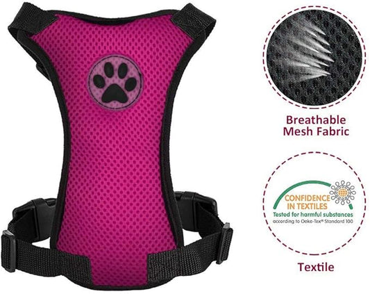 SlowTon Dog Seat Belt Harness for Car, Dog Car Harness Adjustable Mesh Breathable & Dog Seatbelt Safety Tether with Elastic Bungee for Small Medium Large Pets(Fuchsia, Double Clip, M)