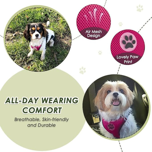 SlowTon Dog Seat Belt Harness for Car, Dog Car Harness Adjustable Mesh Breathable & Dog Seatbelt Safety Tether with Elastic Bungee for Small Medium Large Pets(Fuchsia, Double Clip, S)