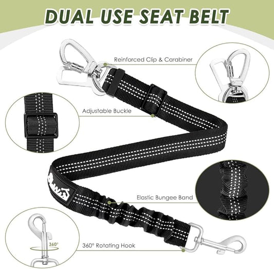 COOYOO Dog Seat Belt,Retractable Dog Car Harness Seat Belt for Car Adjustable Nylon Pet Safety Seat Belts Heavy Duty & Elastic Bungee Buffer