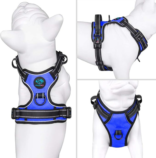 PHOEPET No Pull Dog Harnesses for Small Puppies Reflective Adjustable Front Clip Vest with 2 Metal Leash Attachment Hooks Soft Handle [Over The Head Design](XL, Royal Blue)