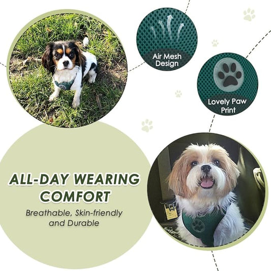 PHOEPET Reflective Dog Harness No Pull Large Breed Vest with 2 Metal Leash Attachment Hooks(L, Green)