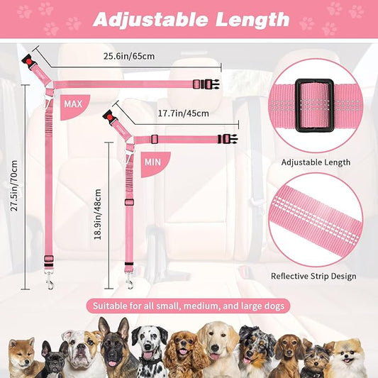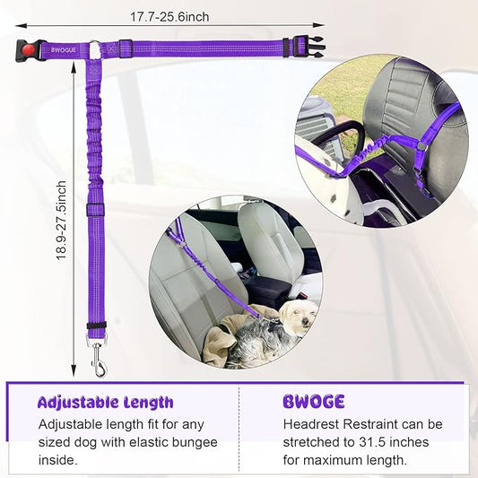 BWOGUE 2 Piece Dog Seat Belt for Car with Elastic Bungee Buffer Safety Seatbelt Car Headrest Restraint Wear Adjustable Metal Buckle Harness in Vehicle Travel for Pet