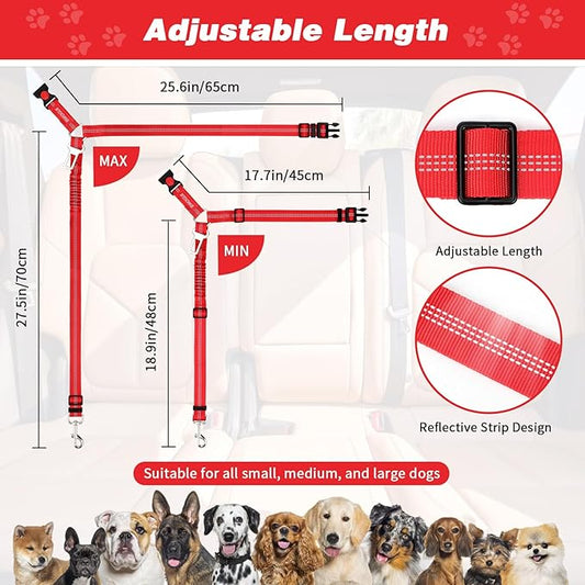 2 Piece Set Retractable Dog Car Seatbelts - Adjustable Pet Seat Belt for Vehicle Headrest Restraint - Heavy Duty & Elastic & Durable Car Harness