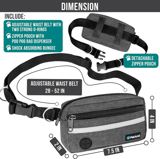 PetAmi Hands Free Dog Leash, Dog Running Leash Belt for Walking Jogging, Dog Waist Zipper Pouch Fanny Pack with Poop Bag Dispenser, Dual Padded Handle Bungee Leash for Small Medium Large Dogs, Single